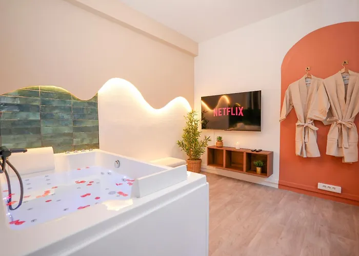 르망의 손님들은 Suite Romantique Avec Spa 아파트에 즐겁게 머물 수 있습니다.